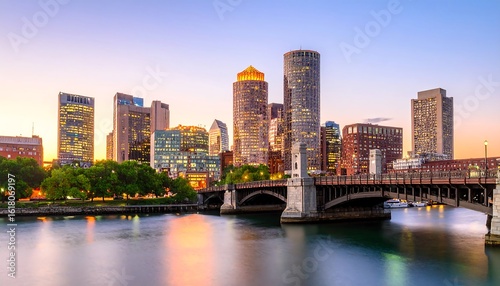 © can, Obraz premium Panoramic view of Boston skyline at twilight reflecting in Charles River