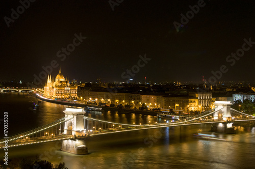 © Bohdana, Fototapeta premium Panoramic view of Budapest at night.