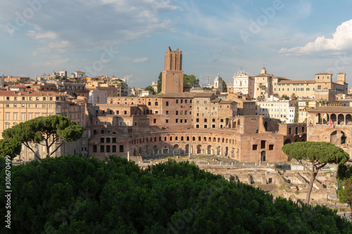 © TravelFlow, Fototapeta premium Panoramic view of city Rome with Trajan's Market and Roman forum