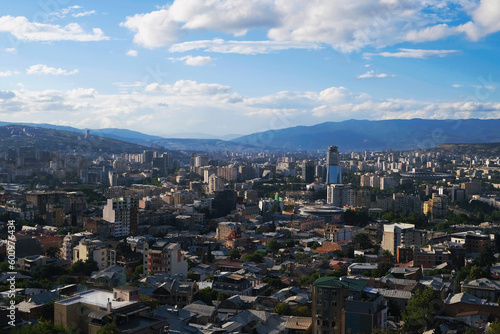 Fototapeta premium Panoramic view of cityscape Tbilisi from observation deck on the mountains,...