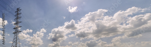 Fototapeta premium Panoramic view of clouds and sky with electricity pole