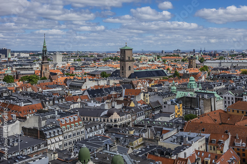 © dbrnjhrj, Fototapeta premium Panoramic view of Copenhagen city in sunny day from the City hall tower. Copenhagen, Denmark.