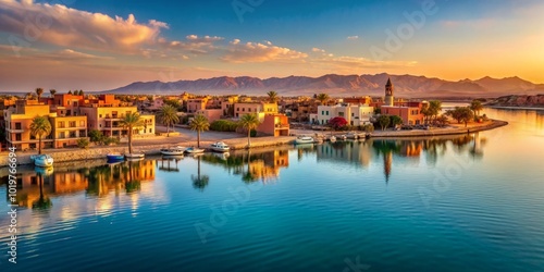 Fototapeta premium Panoramic view of El Gouna Red Sea Egypt at sunset, El Gouna, Red Sea, Egypt,...