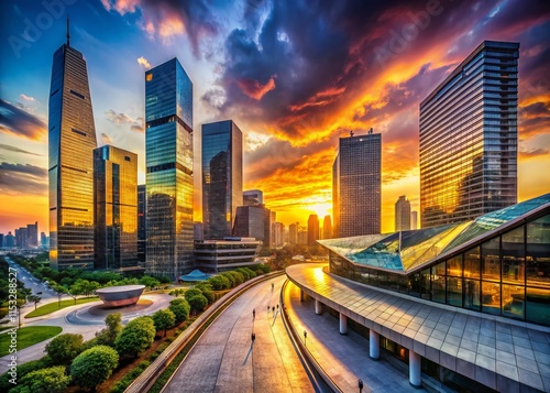 © Arnada, Fototapeta premium Panoramic View of Enigmatic Modern Architecture in Vibrant Cityscape
