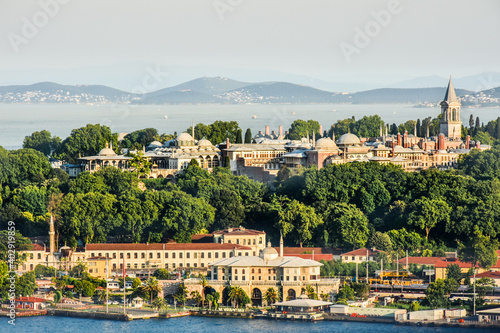 © Ersin, Fototapeta premium Panoramic view of Golden Horn with Topkapi palace from Galata tower, Istanbul, Turkey
