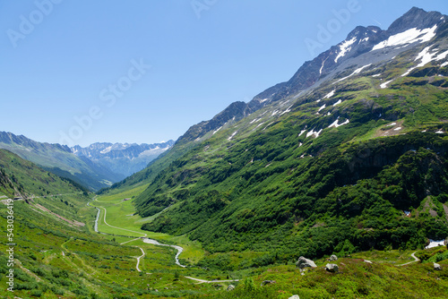 Naklejka premium Panoramic view of green alpine meadows and mountains