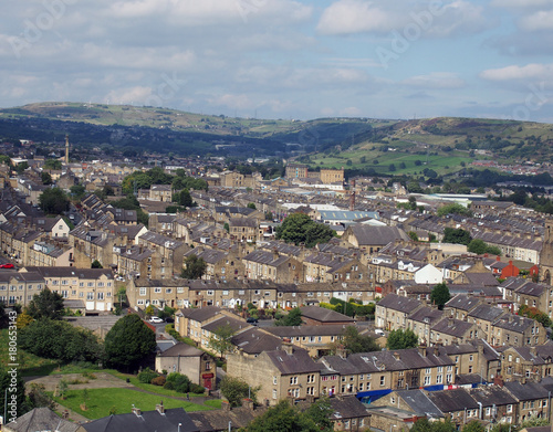 © Philip J Openshaw , Fototapeta premium panoramic view of halifx in west yorkshire showing king cross area and pennine hills in the background