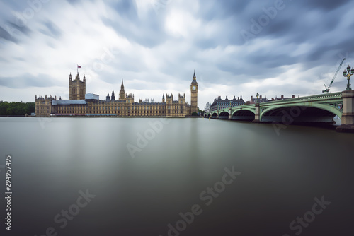 Fototapeta premium Panoramic view of Houses of Parliament, Big Ben and Westminster Bridge with...