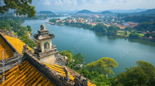 © Ari, Fototapeta premium Panoramic View of Hue City from a Temple Rooftop