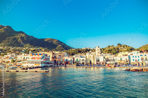Fototapeta premium Panoramic view of Lacco Ameno bay at sunrise