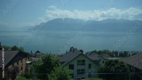 © Marco, Naklejka premium Panoramic View of Lake Geneva with Alpine Mountains in Background, Switzerland