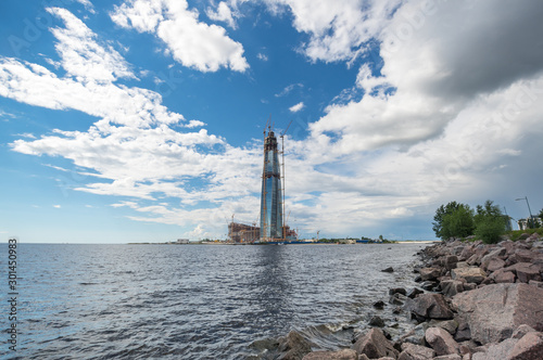 © gumbao, Fototapeta premium Panoramic view of Lakhta Center and the Finnish Gulf