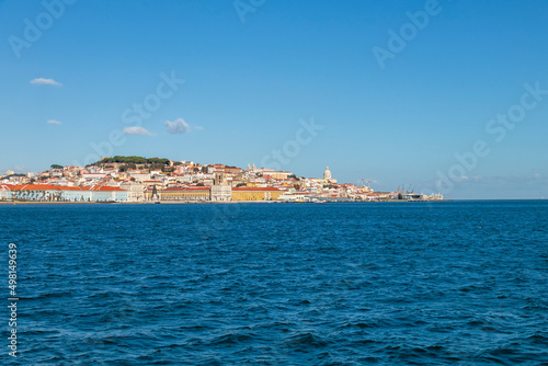 Fototapeta premium Panoramic view of Lisbon Skyline as seen from Almada with waterfront of Tagus river, Portugal