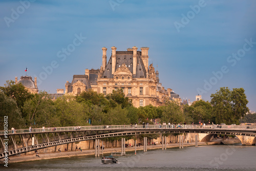 © Maresol, Naklejka premium Panoramic view of Louvre and Seine river in Paris city, France