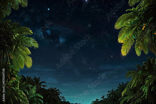 Fototapeta premium Panoramic view of lush rainforest or starry night sky.