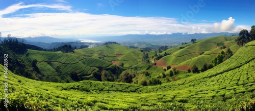 Fototapeta premium Panoramic View of Lush Tea Plantation in Valley