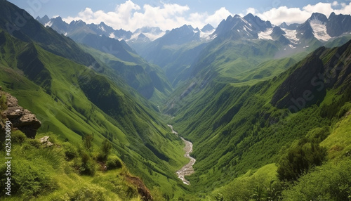 © djvstock, Naklejka premium Panoramic view of majestic mountain range in tranquil wilderness area generated by AI