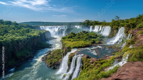 Obraz premium Panoramic view of majestic waterfalls and lush green jungle. Natural wonder...
