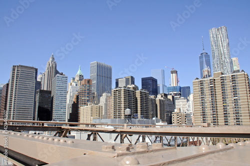 Obraz premium Panoramic view of Manhattan skyline from Brooklyn Bridge, New York City
