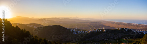 © MiniMoon Photo, Obraz premium Panoramic view of Marjal wetland narural park in Pego, Spain, at sunset. View from Segaria mountain.