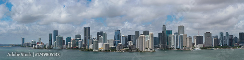 Obraz premium Panoramic view of Miami skyline. Panoramic cityscape of Brickell Miami. Skyscrapers of Brickell. Panoramic view of the Miami financial district. Panoramic aerial of Brickell in Miami Beach.