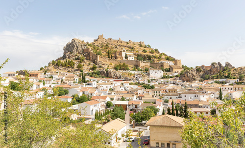 Fototapeta premium panoramic view of Moclin town and the castle, province of Granada, Andalusia,...