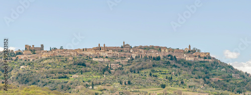 Obraz premium Panoramic view of Montalcino, Siena, Italy, famous for the brunello wine