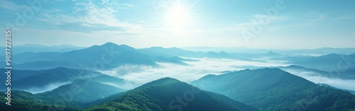 © gen_pick, Fototapeta premium Panoramic view of mountain landscape during a golden sunset