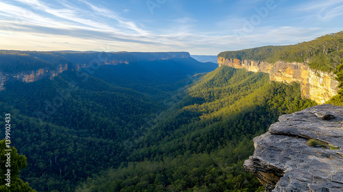 © Parsudi, Fototapeta premium Panoramic View Of Mountainous Valley At Sunrise