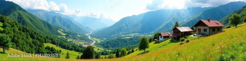 © Phascharaporn, Fototapeta premium Panoramic view of Najac village & surrounding valley, hilltop, landscape, panoramic
