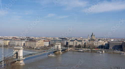 Obraz premium Panoramic view of of Szenchenyi Chain bridge over Danube river in Budapest...