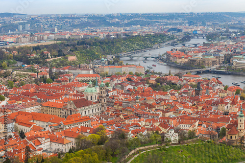 Obraz premium Panoramic view of old town along Vltava river, Prague, Czech Republic