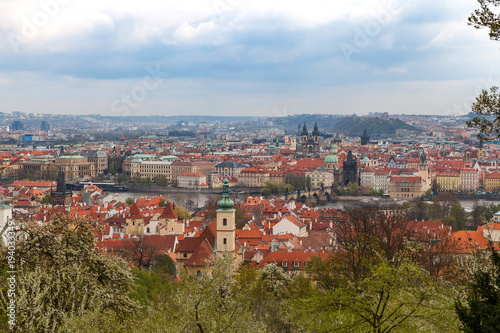 Obraz premium Panoramic view of old town along Vltava river, Prague, Czech Republic