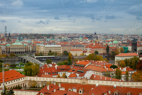 © Юлия Лисяная, Obraz premium Panoramic view of old town in Prague. History, cathedral.