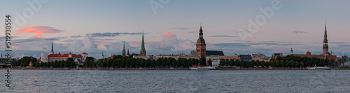 © Neils, Fototapeta premium Panoramic view of old town in Riga in a beautiful summer evening sunset, Latvia