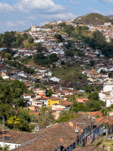 © Javier, Fototapeta premium Panoramic view of Ouro Preto with mountains, Brazil