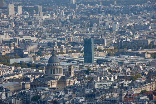 © Uvamenfoto, Fototapeta premium Panoramic view of Paris from Montparnasse with the neoclassical Pantheon and the Zamansky Tower on the Pierre and Marie Curie University campus