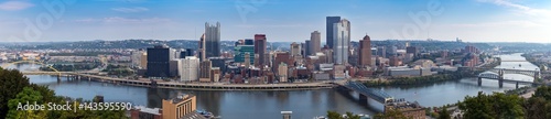 Naklejka premium Panoramic view of Pittsburgh city skyline and Monongahela River from Mt....