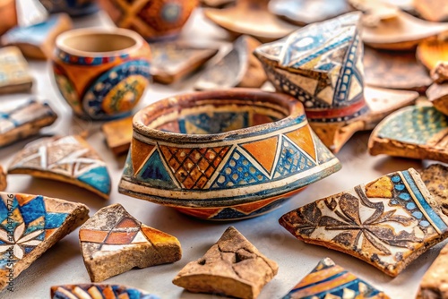 © Four888, Fototapeta premium Panoramic View of Reassembled Ancient Pottery Fragments
