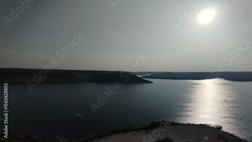 © Yana, Fototapeta premium Panoramic View of River and Green Cliffs under Clear Sky