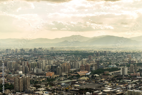 Obraz premium Panoramic view of Santiago de Chile and the surrounding mountains.