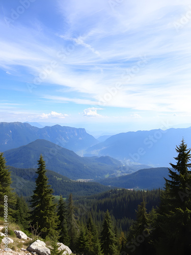 © Stacy, Fototapeta premium Panoramic view of snezka mountain range in czech republic in august