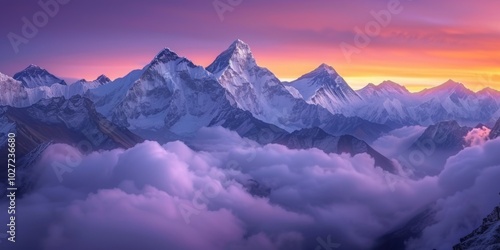 © Nadejda, Obraz premium Panoramic view of snow mountains range landscape. Generative AI.