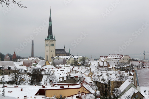 Obraz premium Panoramic view of snowy Tallinn Old Town