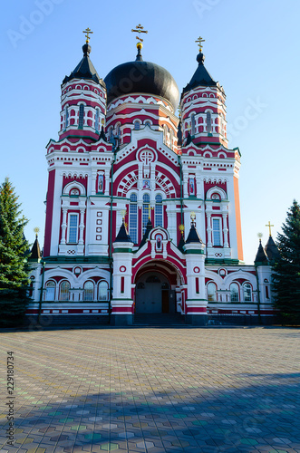 Fototapeta premium Panoramic view of St. Panteleimon Orthodox monastery in autumn