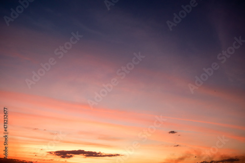 © pinglabel, Obraz premium Panoramic view of sunset golden and blue sky nature background.