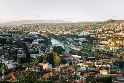 © Rychko Yevhen, Fototapeta premium Panoramic view of Tbilisi city. old town and modern architecture