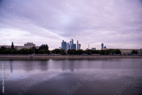 © константин константи, Naklejka premium panoramic view of the big river in the city at sunrise