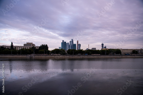 © константин константи, Naklejka premium panoramic view of the big river in the city at sunrise