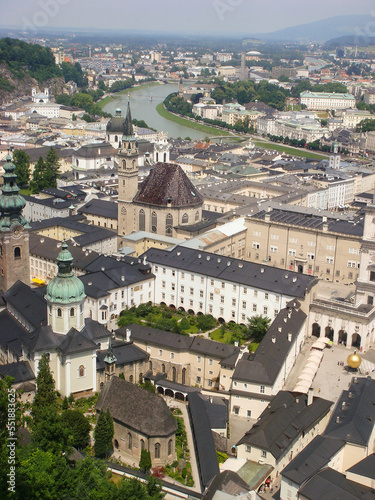 © Liudmyla, Obraz premium Panoramic view of the city and river on a summer day. Salzburg. Austria.